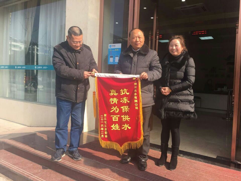 池陽街道辦事處副書記舒丙亮對市供水公司在這場幾十年不遇的防凍害保供水戰(zhàn)斗中所表現(xiàn)出的奮勇拼搏,勇于奉獻(xiàn)的高尚品德給予很高的評價。面對幾十年未遇的冰凍寒潮和大面積爆管爆表災(zāi)害,供水公司以對用戶高度負(fù)責(zé)任的態(tài)度,主動承擔(dān)企業(yè)的社會責(zé)任,不畏嚴(yán)寒,晝夜不停地?fù)屝,特別是免費為用戶更換凍壞水表,更是證明了公司是一家有社會責(zé)任感的企業(yè),公司更有一支訓(xùn)練有素、戰(zhàn)斗力強(qiáng)的員工隊伍。書記的一番真誠的話語,表達(dá)了池陽街道辦事處古舜社區(qū)對供水公司熱誠服務(wù)的謝意,特別是對供水公司客戶服務(wù)中心水表搶修人員優(yōu)質(zhì)高效的服務(wù)給予了充分的肯定和由衷的感激。