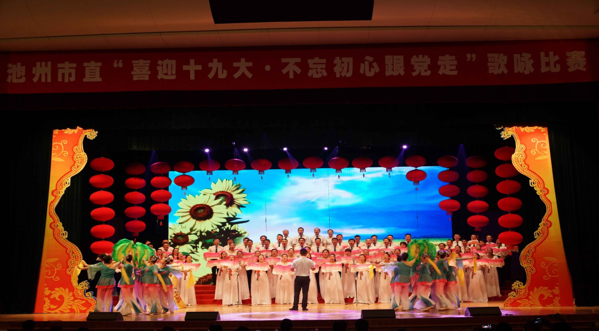 6月27日下午,由中共池州市直機關工委,池州市文廣新局聯(lián)合舉辦的“喜迎十九大,不忘初心跟黨走”歌詠比賽在秋浦影劇院拉開帷幕。池州市住房和建設委員會在此次大合唱比賽中脫穎而出,憑借節(jié)秦精準、悠揚婉轉的演唱、細膩的情感表達、高超的演唱技巧,唯美動人的伴舞,打動了現(xiàn)場的評委和觀眾,以10.04分的好成線奪得了第一名的好成績。