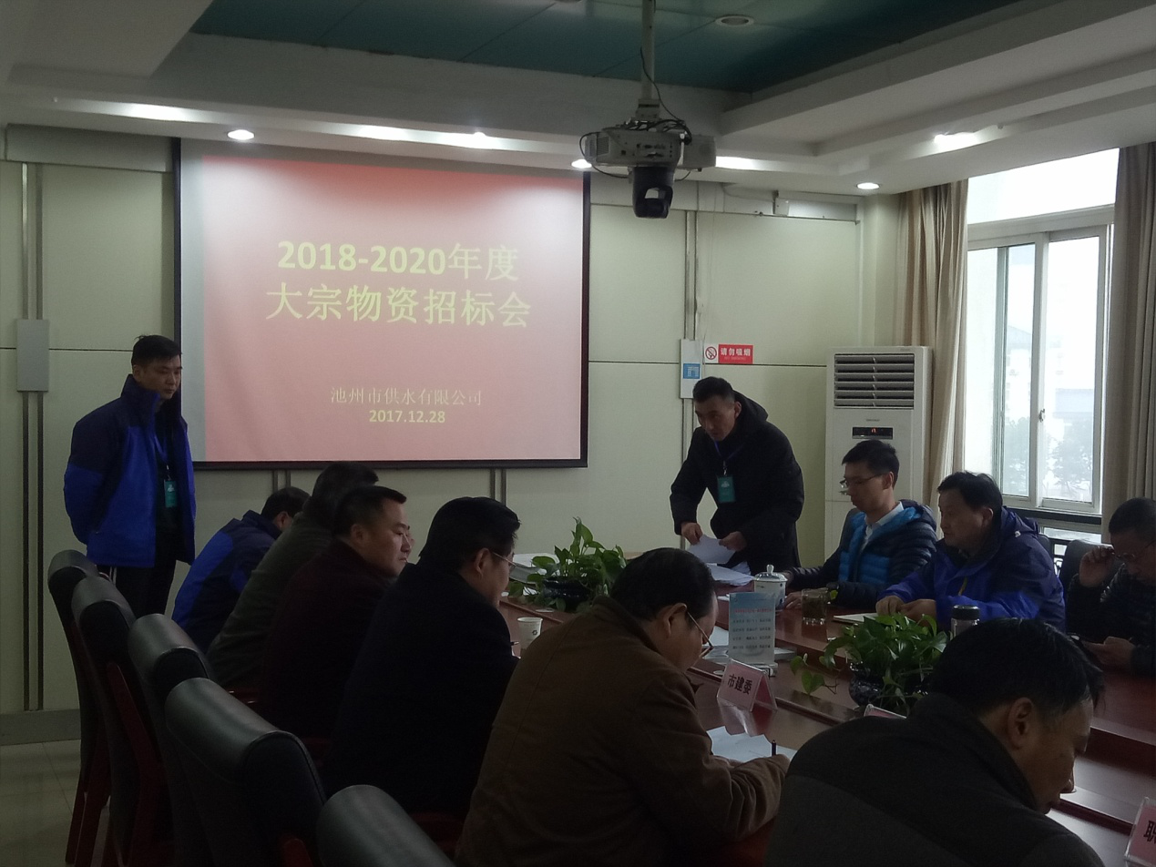 為加強公司物資采購管理工作,進(jìn)一步規(guī)范公司常用物資的采購行為,降低采購成本,加強物資質(zhì)量的管理。12月28日,池州市供水有限公司在三樓會議室組織召開了2018-2020年度大宗物資集中采購招標(biāo)會議。公司招標(biāo)投標(biāo)管理委員會成員、職工代表及使用部門代表出席了會議,市國資委、住建委、公共事業(yè)局李應(yīng)友局長對本次招標(biāo)進(jìn)行了現(xiàn)場監(jiān)督。