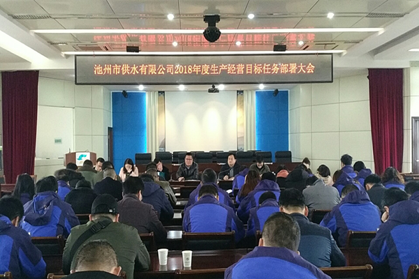 為進(jìn)一步明確2018年工作目標(biāo),細(xì)化、落實(shí)工作任務(wù)和責(zé)任,進(jìn)一步統(tǒng)一思想、凝心聚力,為決戰(zhàn)2018年度目標(biāo)任務(wù)開(kāi)好局、起好步,3月2日上午,池州市供水有限公司2018年生產(chǎn)經(jīng)營(yíng)目標(biāo)任務(wù)部署大會(huì)在公司四樓會(huì)議室隆重召開(kāi)。這是春節(jié)后的首個(gè)重要會(huì)議,公司全體員工精神煥發(fā)、斗志昂揚(yáng)、信心滿滿地參加了會(huì)議。