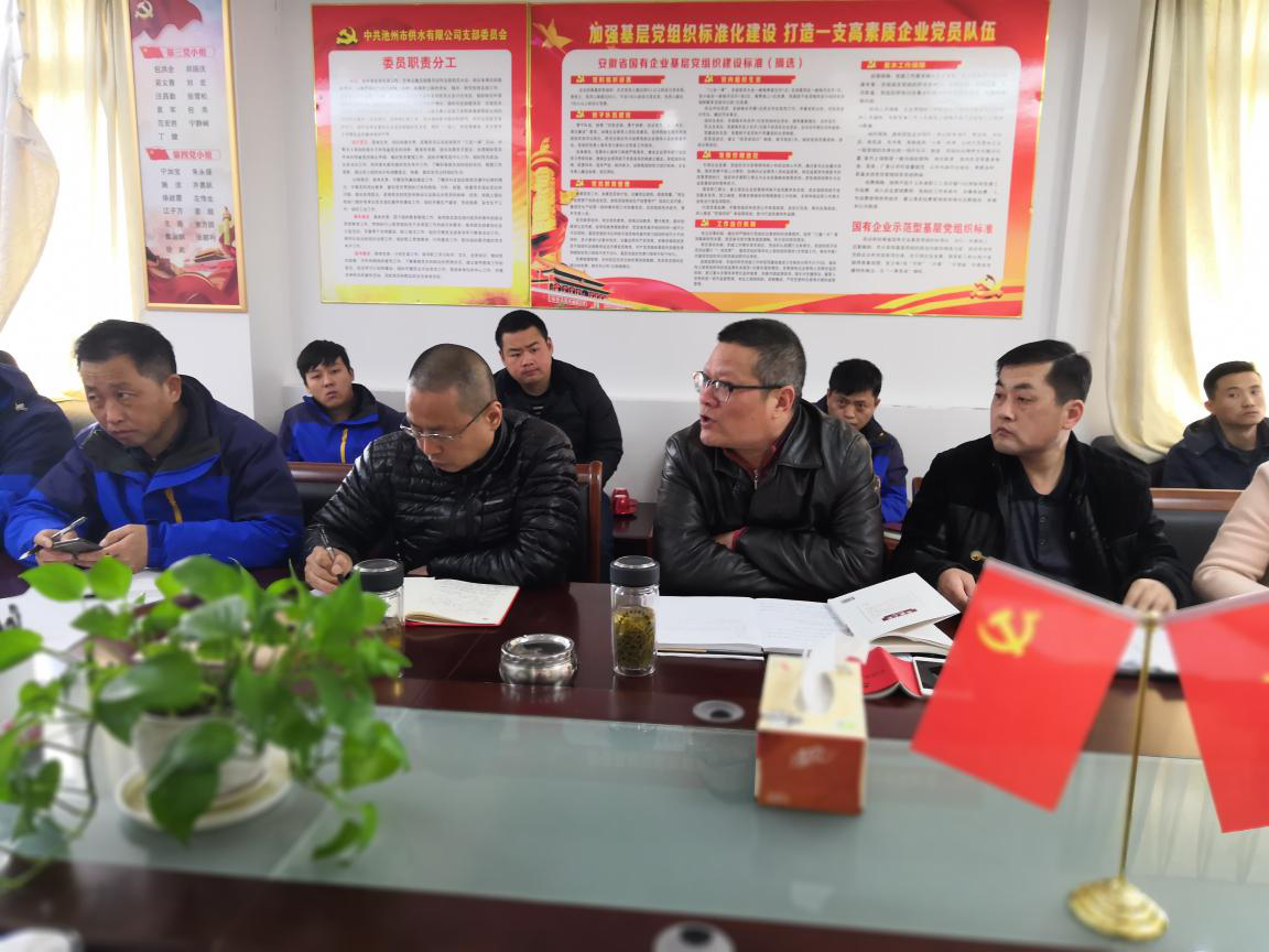 2018年3月21日,池州市供水有限公司召開全體黨員大會,深入學(xué)習(xí)兩會精神,對貫徹落實兩會精神進(jìn)行部署。黨支部書記、公司董事長鐘誠同志和建投黨委委員、公司總經(jīng)理吳小平同志參加了會議。