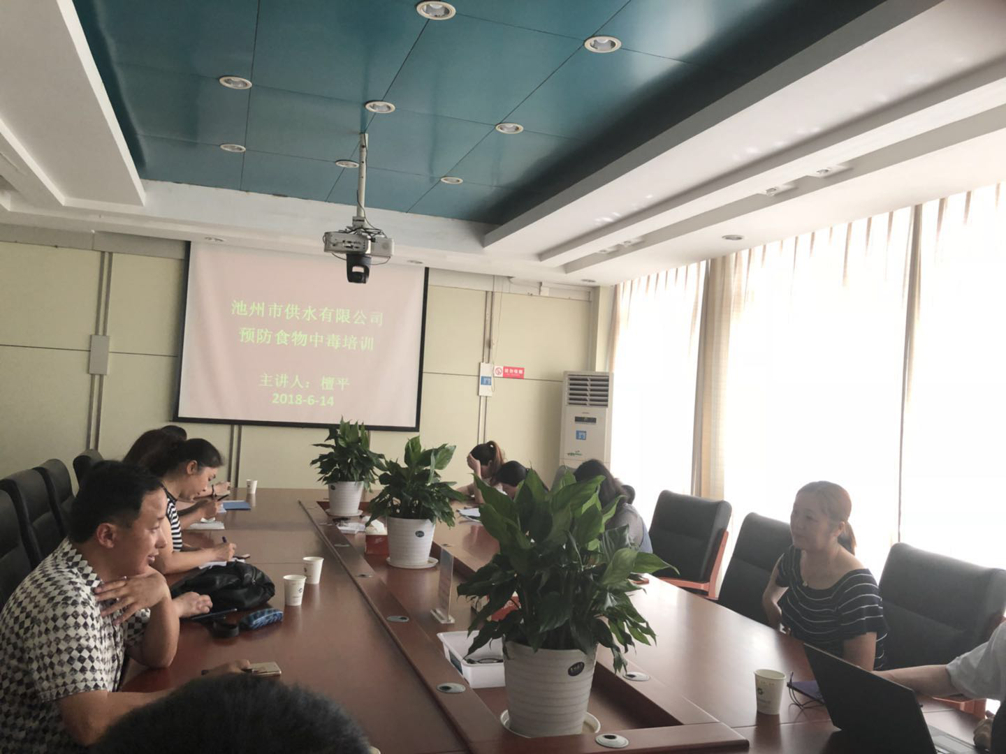 為加強(qiáng)食堂食品安全管理,有效預(yù)防食堂食物中毒事故的發(fā)生,6月14日下午,池州市供水公司開(kāi)展預(yù)防食物中毒專題培訓(xùn),供水、排水兩家公司食堂工作人員、涉及食堂工作的相關(guān)人員20余人參加培訓(xùn),公司副總經(jīng)理王忠榮主持培訓(xùn)。