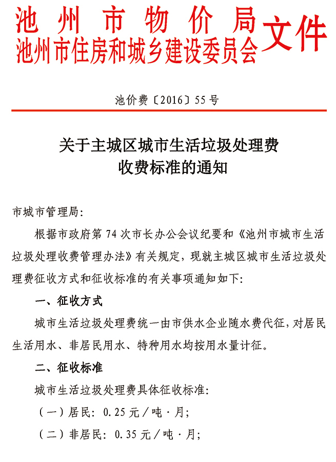 | 關于主城區(qū)生活垃圾處理費收費標準的通知 | |