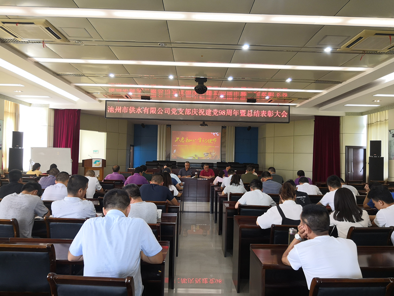 6月26日,池州市供水有限公司黨支部召開慶祝建黨98周年暨總結(jié)表彰大會。會議全面總結(jié)了一年來黨支部的各項工作,并對先進黨小組、優(yōu)秀黨務(wù)工作者和優(yōu)秀共產(chǎn)黨員進行表彰。大會由王忠榮同志主持,全體黨員、發(fā)展對象和入黨積極分子參加。建投集團黨委委員吳小平同志出席會議。