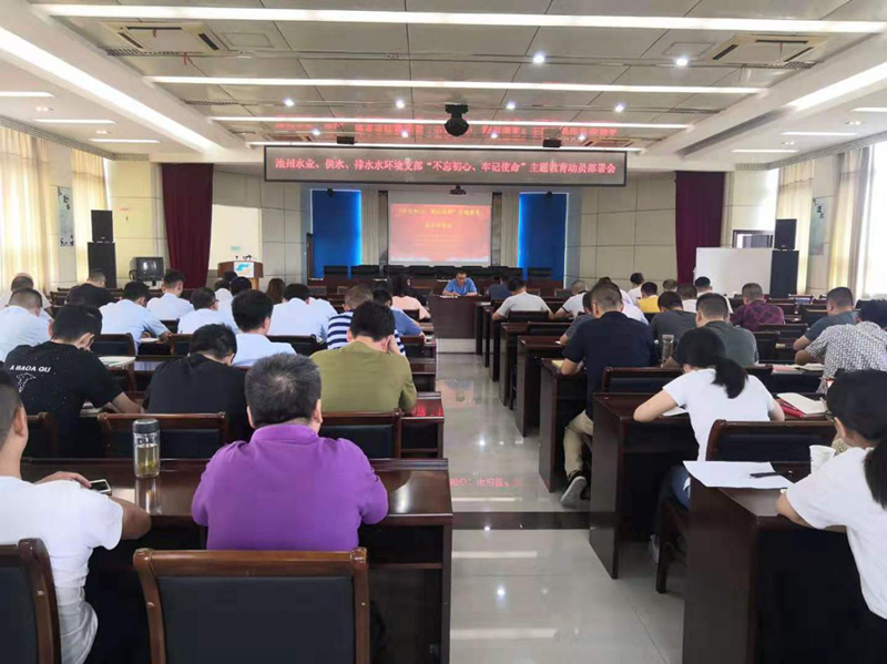 為扎實開展“不忘初心、牢記使命”主題教育,根據(jù)上級黨組織工作部署,結合公司實際,9月16日下午,池州水業(yè)、供水、排水水環(huán)境黨支部聯(lián)合召開“不忘初心、牢記使命”主題教育動員部署會。三個支部的黨員、發(fā)展對象和積極分子約80余人參加。建投集團黨委委員吳小平同志出席本次會議并作重要講話。
