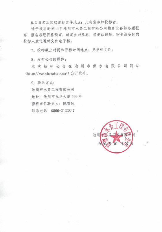 ----------------------------------------------------------------------------------- 上一篇:池州市供水有限公司液相色譜儀... 下一篇:流標公示 |
