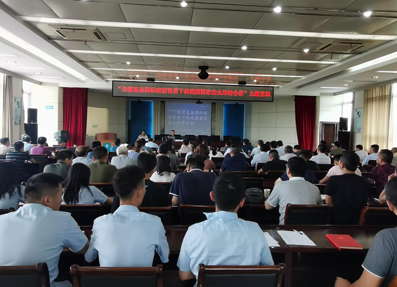 李福坤教授以“當(dāng)前復(fù)雜國際疫情背景下的我國國家安全形勢分析”為題,從當(dāng)前國際疫情背景出發(fā),用生動的案例、詳實的數(shù)據(jù)和嚴(yán)謹(jǐn)?shù)倪壿嫞钊霚\出地分析了當(dāng)前周邊安全環(huán)境、中美關(guān)系、國際戰(zhàn)略形勢等,深刻闡述了我國整體安全觀和國家安全戰(zhàn)略,為大家呈現(xiàn)了一堂精彩的國家安全形勢教育專題黨課,引發(fā)了現(xiàn)場陣陣熱烈的掌聲。