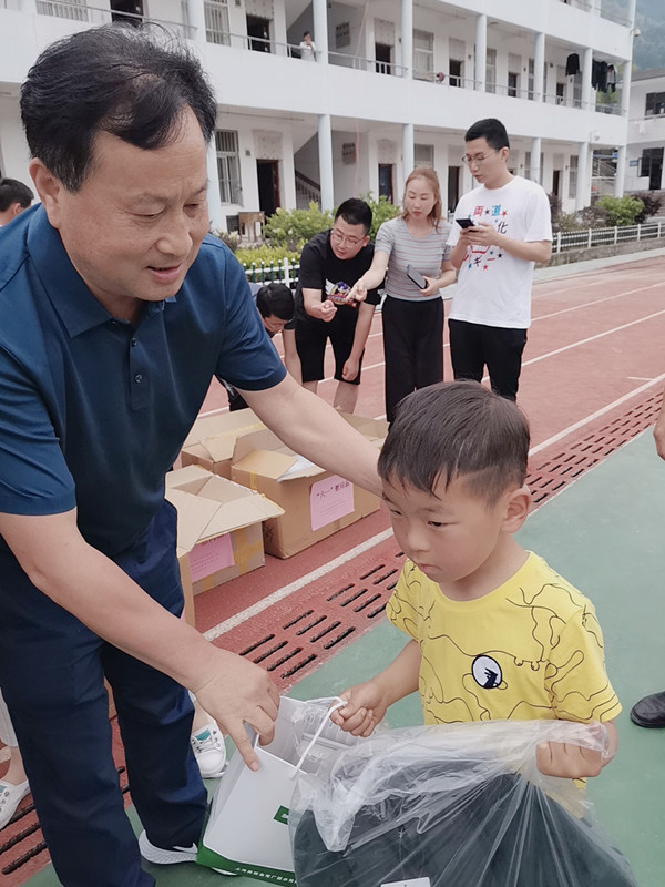 “我們連續(xù)來了6年,每年帶的禮物都不一樣,今年給孩子們帶來的是書包、鋼筆和墨水”市建材工會(huì)方學(xué)松主席說。活動(dòng)現(xiàn)場,慰問團(tuán)成員將書包等禮物一個(gè)一個(gè)發(fā)放到孩子們手中,孩子們高興地說著感謝!很多孩子對(duì)方主席已經(jīng)很熟絡(luò),六年,剛好陪伴了他們從小學(xué)到中學(xué)。