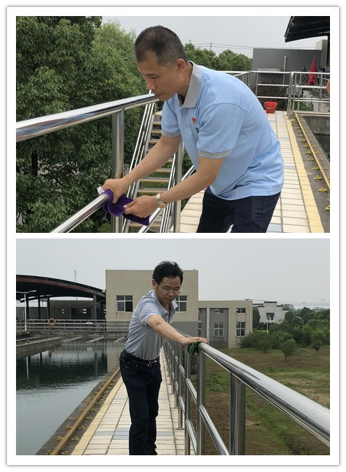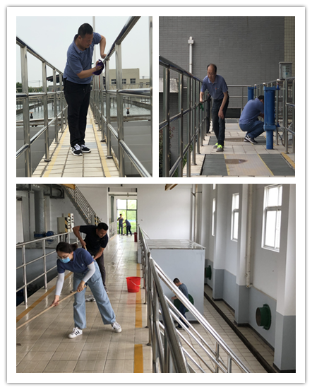 5月28日下午,初夏的江口水廠人頭攢動(dòng),由支部書記、董事長(zhǎng)楊觀樂同志帶隊(duì)、總經(jīng)理李張兵親自參與的清潔水廠活動(dòng)準(zhǔn)時(shí)開始。為了達(dá)到“比學(xué)趕超”的效果,清掃隊(duì)50余人共分6個(gè)小組,對(duì)廠區(qū)6個(gè)區(qū)域進(jìn)行包保清潔。在反沖洗泵房里,他們揮汗如雨,用拖把擦洗著每一塊瓷磚;在濾池和平流池上,他們不知疲倦,用抹布擦拭著每一處欄桿;在加藥間中,他們認(rèn)真細(xì)致,用掃帚清掃每一處的衛(wèi)生死角;在送水車間里,他們專心致志,用清水沖刷著每一處地面,他們用實(shí)際行動(dòng)彰顯池城供水“守護(hù)者”身份。