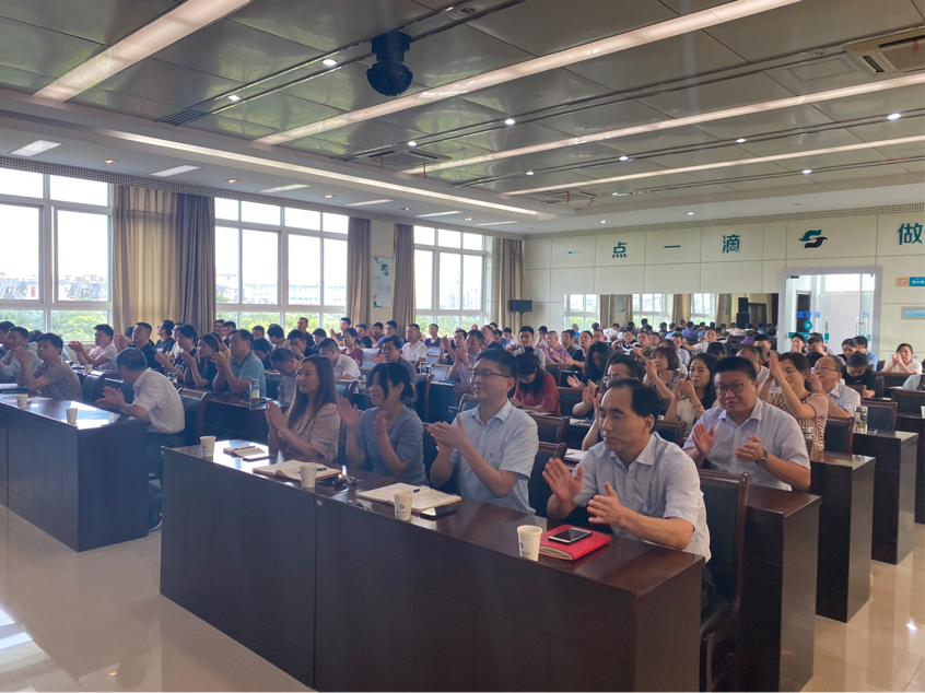 7月20日下午,致深水大學(xué)開學(xué)季“池州課堂”正式開講。池州供水、排水、水環(huán)境公司董事長(zhǎng)楊觀樂以“與時(shí)代同步 和深水同行”為題,在供水公司四樓會(huì)議室進(jìn)行授課。市建投集團(tuán)黨委副書記方長(zhǎng)根、黨群工作部主任張國(guó)祥受邀出席,池州供水、排水、水環(huán)境公司領(lǐng)導(dǎo)班子及全體員工約三百余人至現(xiàn)場(chǎng)聽講,全場(chǎng)座無虛席。
