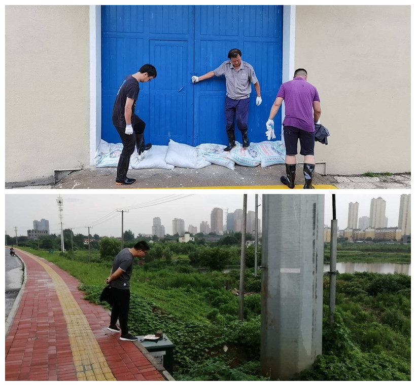圖為民生水廠應(yīng)急防汛現(xiàn)場以及高壓線路巡視