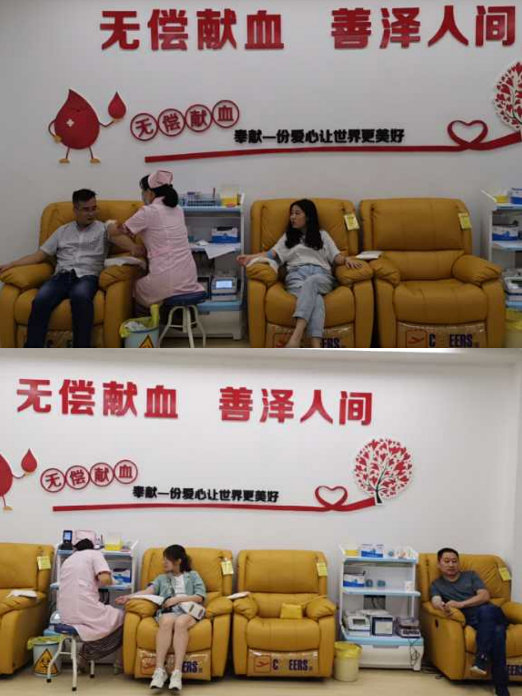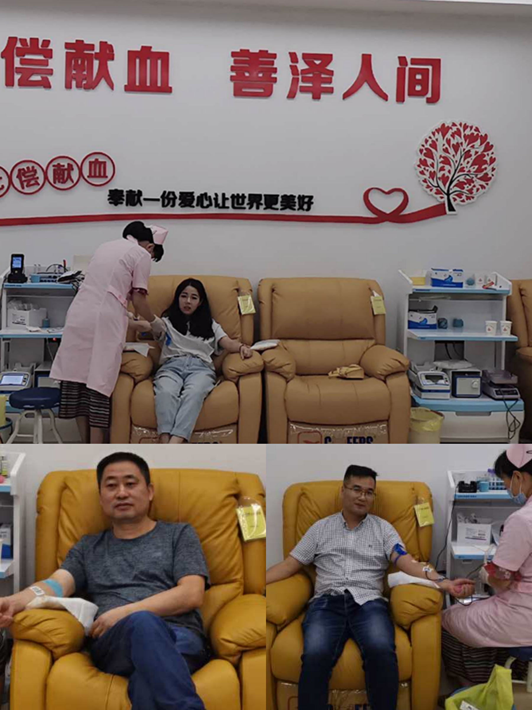 當(dāng)天上午8:30,參加無償獻(xiàn)血的人員齊聚市血站血液中心一樓大廳,在工作人員的指引下,義務(wù)獻(xiàn)血的愛心人士逐一填好血液采集單、血液初步檢驗(yàn)。檢驗(yàn)合格的同事開心不已并順利開始采血,冰冷的鋼針扎進(jìn)血管的短暫疼痛后,他們的臉上都洋溢著幸福的笑容。