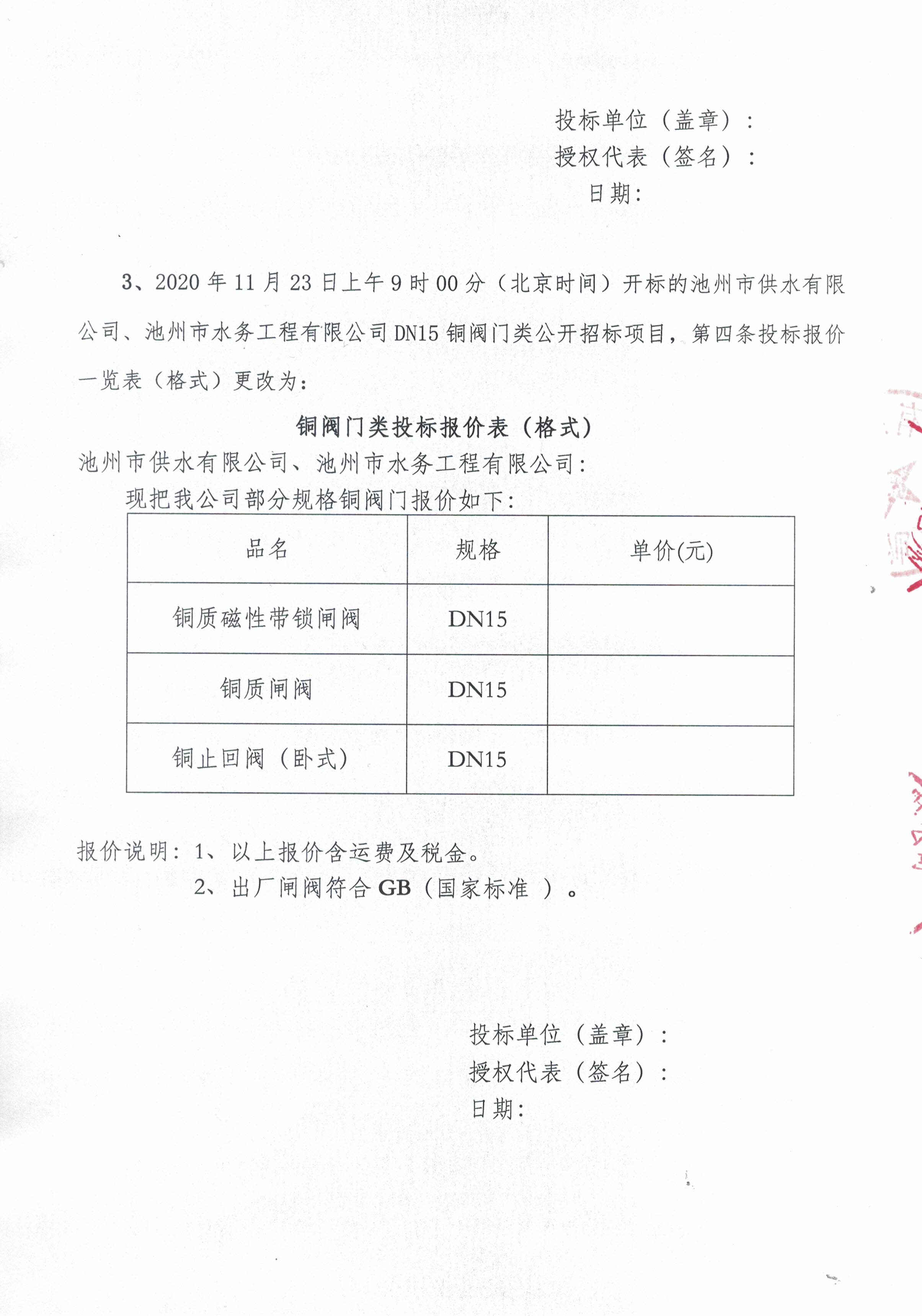 | 池州市供水有限公司、池州市水務(wù)工程有限公司 2021-2022年度公開(kāi)招標(biāo)文件補(bǔ)充說(shuō)明 | |