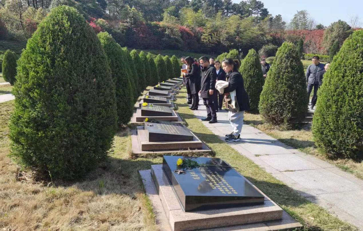 藍(lán)天白云下,單位代表們列隊站在烈士紀(jì)念碑前,向烈士們敬獻(xiàn)花籃,集體鞠躬致敬。隨后,代表們陸續(xù)瞻仰烈士墓,輕輕擺上菊花,向逝去的英雄們默哀致敬。