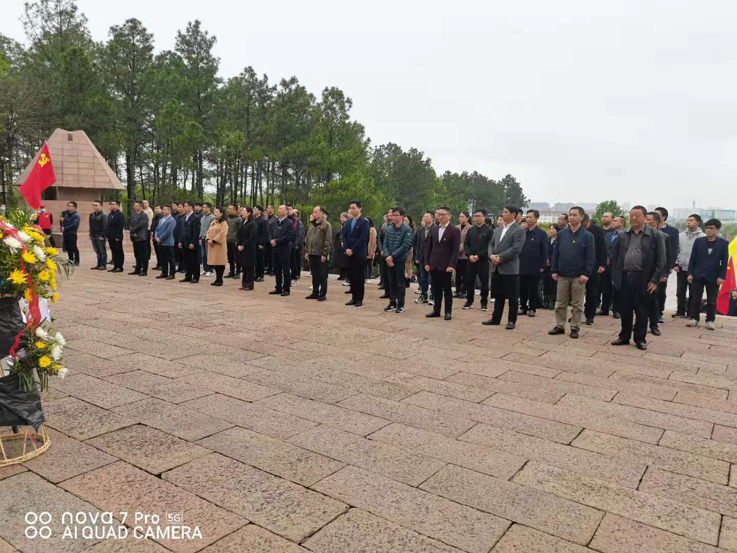上午十一時許,伴隨著莊嚴的國歌,全體黨員、團員肅穆的站在烈士紀念碑前。由黨員代表向烈士紀念碑敬獻花籃,隨后集體鞠躬致敬,表達對烈士的崇高敬意和深切哀悼之情。鞠躬儀式完成后,全體黨員面對黨旗,重溫了入黨誓詞。