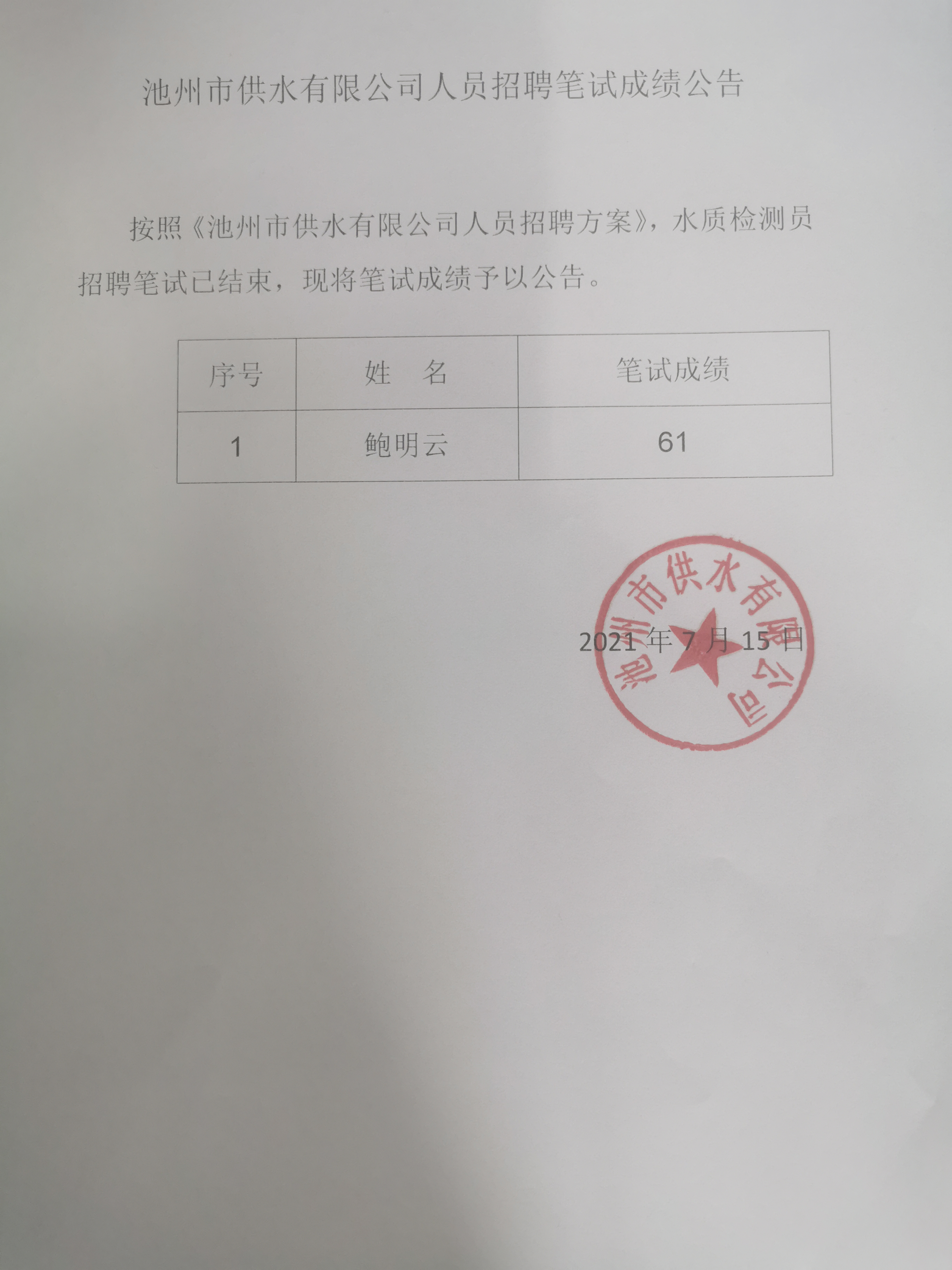 | 水質(zhì)檢測員招聘筆試成績公告 | |