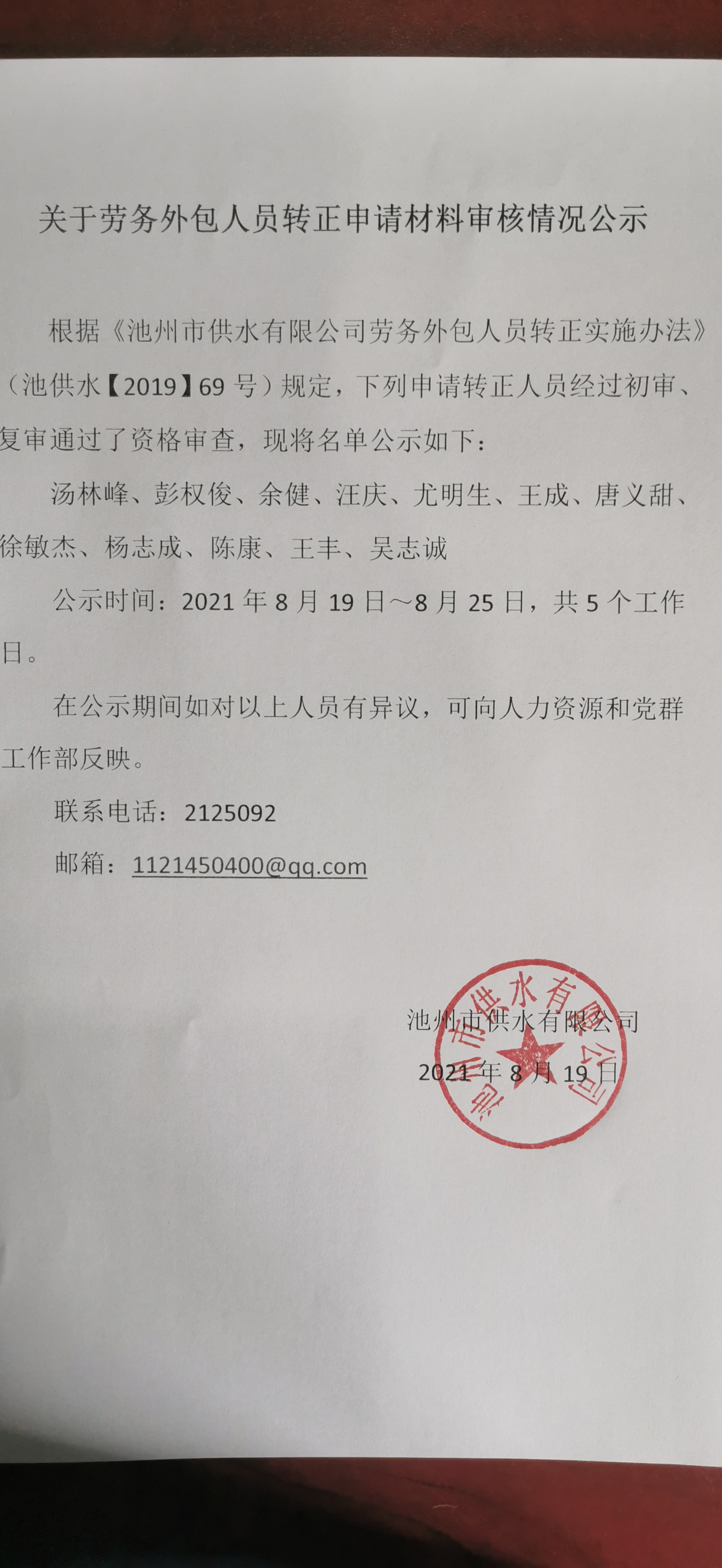 | 外包人員轉(zhuǎn)正申請(qǐng)材料審核情況公示 | |