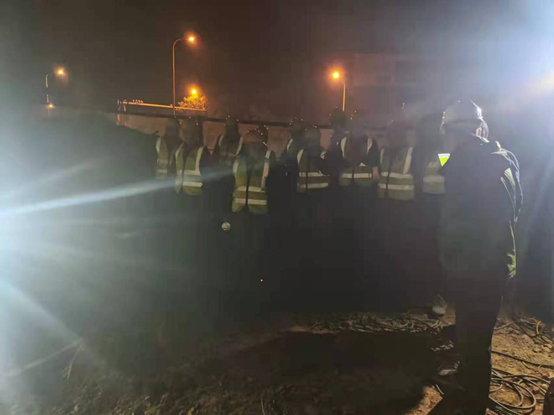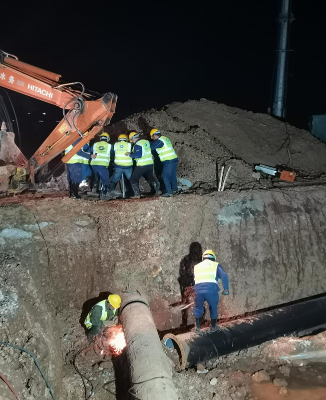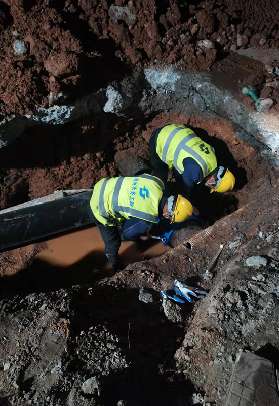 2021年12月14日凌晨一點(diǎn),寒風(fēng)吹拂,清溪大道與牧之路交叉處施工現(xiàn)場(chǎng)燈火通明,新建DN500球墨鑄鐵管的碰頭施工仍在繼續(xù)。江南集中區(qū)企業(yè)眾多,為了不影響正常供水,本次施工被安排在晚上11點(diǎn)之后進(jìn)行,公司負(fù)責(zé)人和技術(shù)人員全部到場(chǎng),全程跟蹤施工過(guò)程,確保不出現(xiàn)任何問(wèn)題,直到凌晨2點(diǎn)半施工結(jié)束。