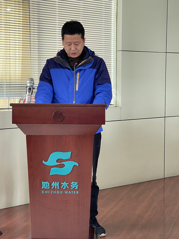 會上,李張兵總經(jīng)理作《堅定信心 勇往直前 奮力奪取2022年各項工作的全面勝利》動員和部署講話。他首先感謝春節(jié)期間水廠、客服、搶修等崗位的一線員工,舍小家、為大家,日夜堅守、樂于奉獻,確保了池城安全優(yōu)質(zhì)供水。他向大會下達2022年各項生產(chǎn)經(jīng)營指標、重點工作任務(wù)和33項主要工作,及各部門重點工作,并將各項工作分解、落實到各責(zé)任人、責(zé)任部門和辦結(jié)時限。他要求公司全體員工一要迅速走出節(jié)日氛圍,全面啟動節(jié)后各項工作,要守規(guī)矩,改作風(fēng)、早謀劃,真實干;二要突出五項核心工作(水價調(diào)整、城鄉(xiāng)供水一體化工程、制度梳理與流程完善、智慧水務(wù)建設(shè)、產(chǎn)銷差控制),毫不動搖地實現(xiàn)既定目標任務(wù);三要注重學(xué)習(xí),持續(xù)提升公司發(fā)展的能力;