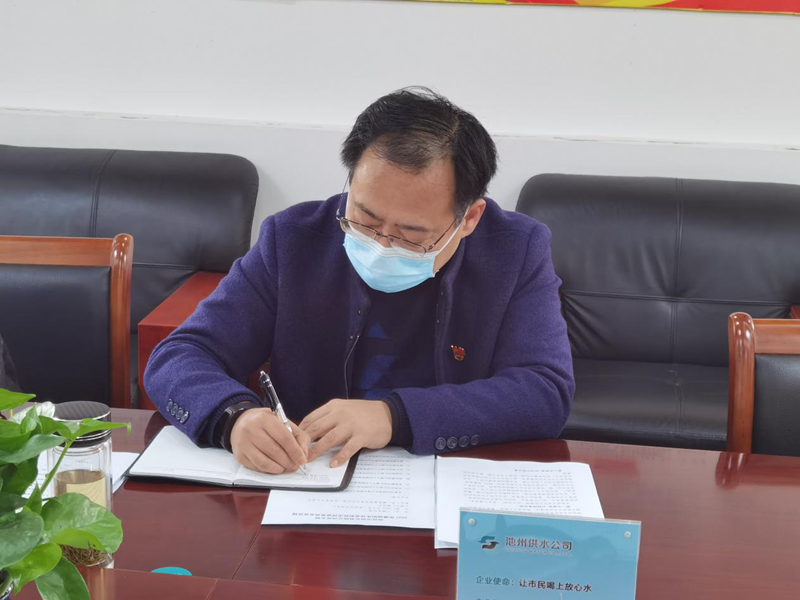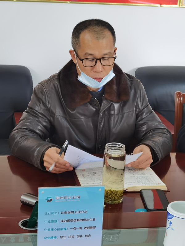 3月23日,池州市供水有限公司黨支部召開(kāi)2021年度組織生活會(huì),支部書(shū)記、副書(shū)記和全體支委參加會(huì)議。池州建設(shè)投資集團(tuán)有限公司黨委書(shū)記、董事長(zhǎng)汪偉同志參加會(huì)議并作點(diǎn)評(píng)講話。