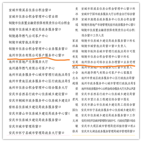 近日,省文明辦、省住房城鄉(xiāng)建設(shè)廳下發(fā)的《關(guān)于在全省住房城鄉(xiāng)建設(shè)系統(tǒng)開展文明服務(wù)窗口創(chuàng)建和文明服務(wù)標兵選樹活動的通知》(建會函〔2021〕898 號),池州市供水有限公司客戶服務(wù)中心被評為2021年度全省住房和城鄉(xiāng)建設(shè)系統(tǒng)“文明服務(wù)窗口”稱號,唐寶英同志榮獲“文明服務(wù)標兵”稱號。