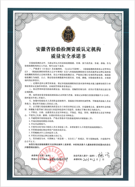 | 池州市供排水水質(zhì)監(jiān)測有限責任公司質(zhì)量安全承諾書 | |