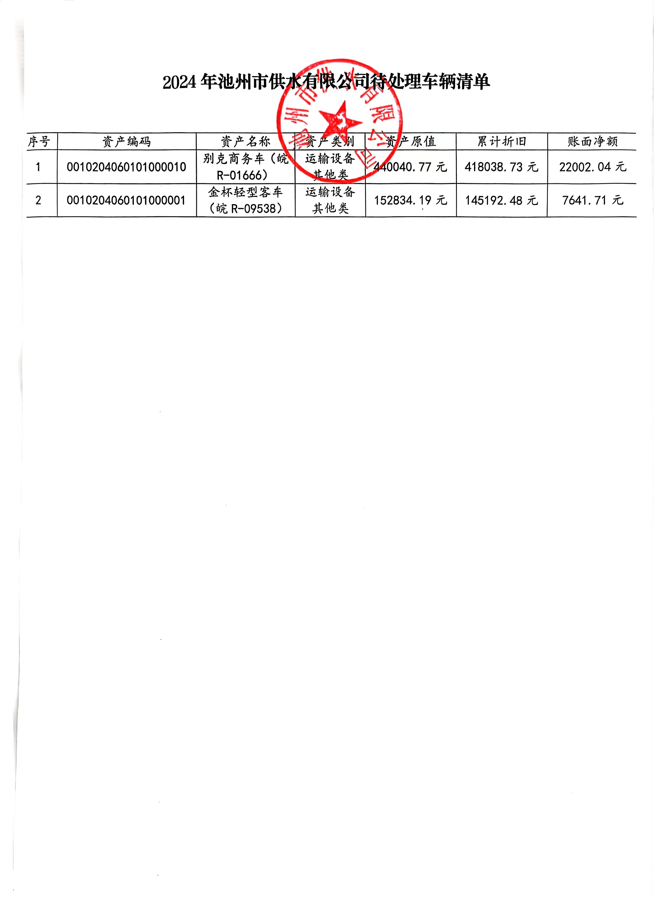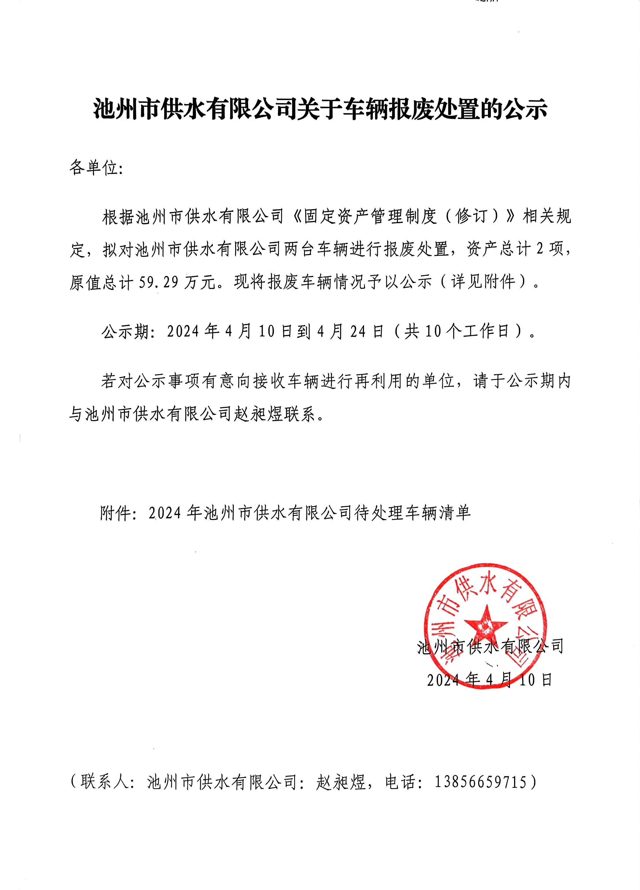 | 池州市供水有限公司關(guān)于車輛報(bào)廢處置的公示 | |