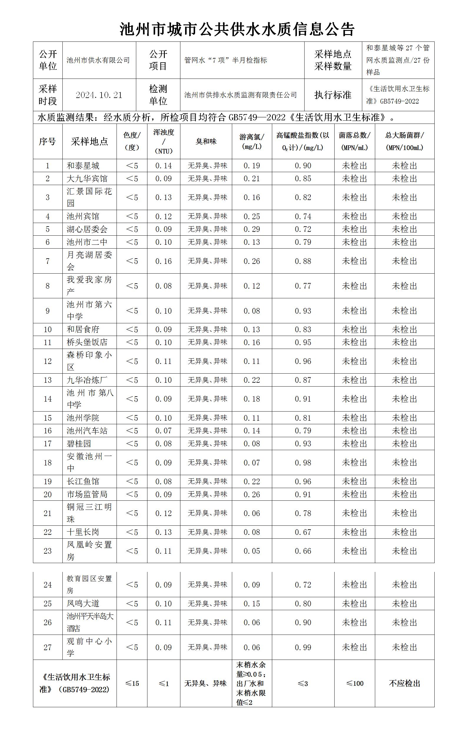 | 池州市城市公共供水水質(zhì)信息公告管網(wǎng)水“7項”半月檢指標(biāo)10-2 | |