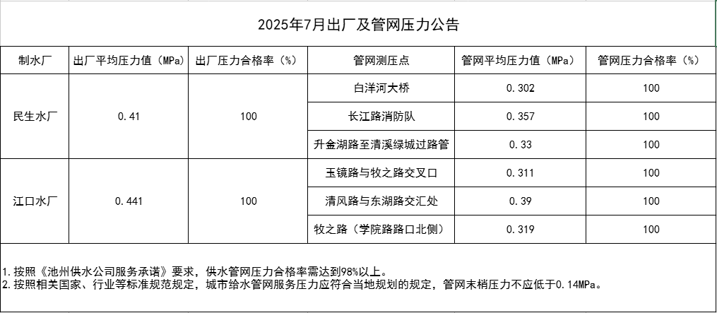 | 2025年7月出廠及管網(wǎng)壓力公告 | |