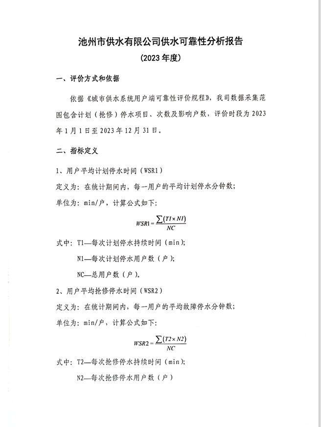 | 池州市供水有限公司供水可靠性分析報(bào)告 | |