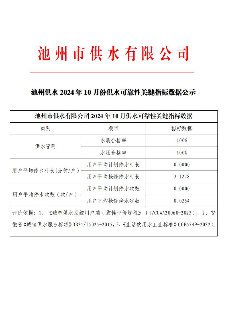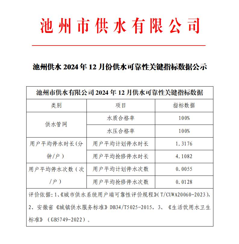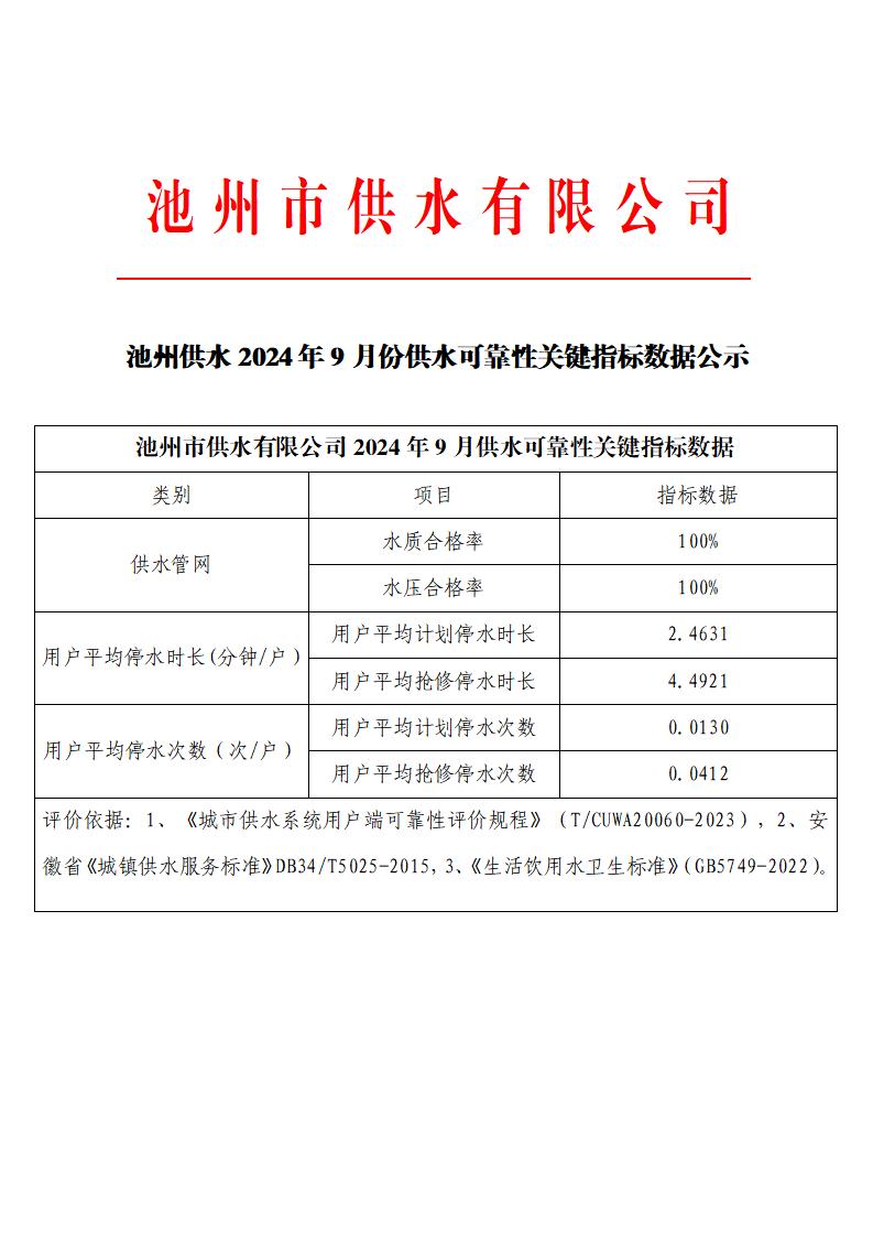 | 池州供水2024年9-12月份池州供水可靠性關(guān)鍵指標(biāo)數(shù)據(jù)公示 | |