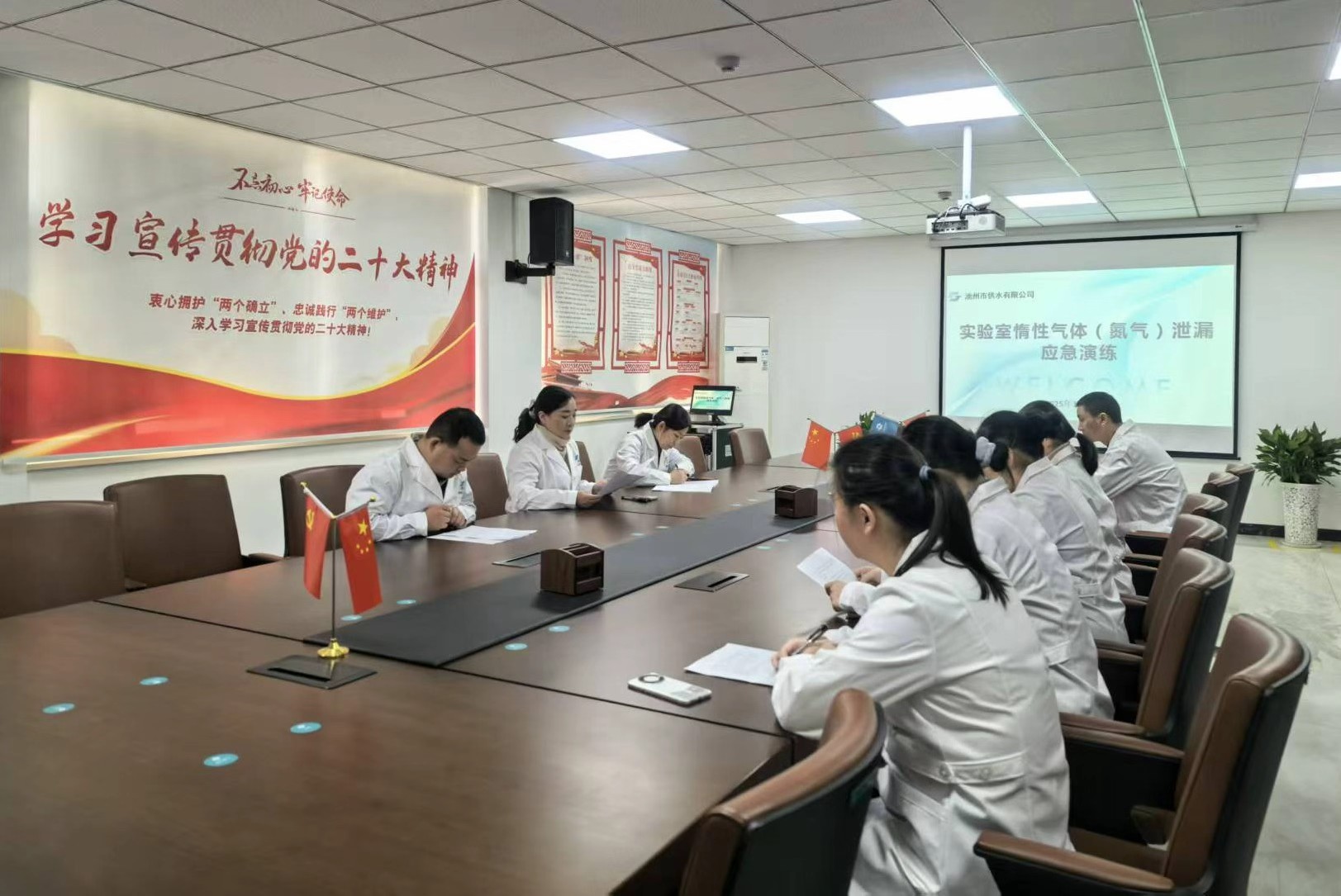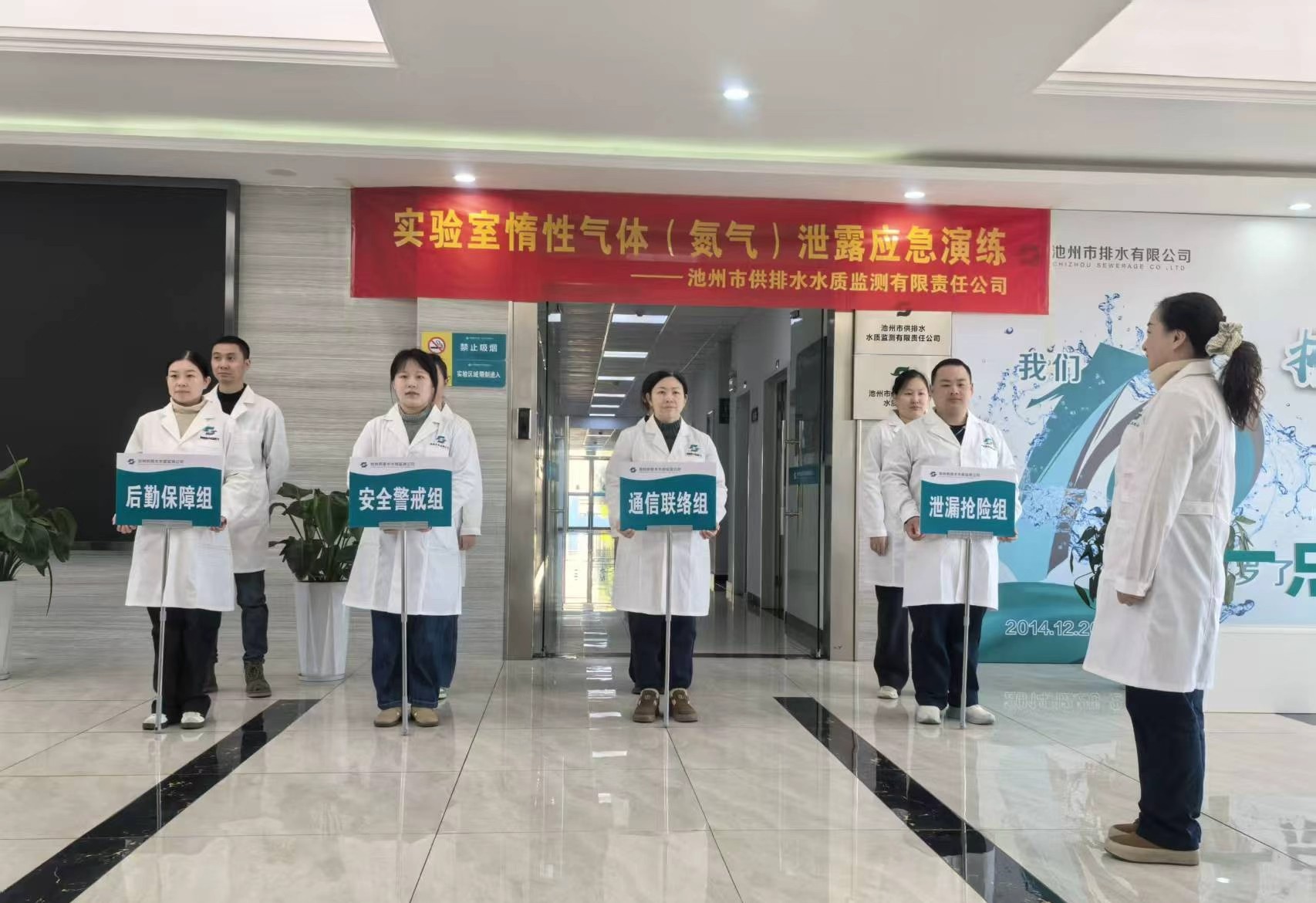 2025年11月20日上午,公司在實(shí)驗(yàn)室區(qū)域組織開展了實(shí)驗(yàn)室惰性氣體(氮?dú)猓┬孤⿷?yīng)急演練,旨在全面提升公司應(yīng)對(duì)突發(fā)氣體泄漏事件的應(yīng)急處置能力,增強(qiáng)全體水質(zhì)檢測(cè)人員的安全防范意識(shí)。本次演練以“安全第一、貼近實(shí)戰(zhàn)、統(tǒng)一指揮、重點(diǎn)突出”為原則,模擬實(shí)驗(yàn)室氣瓶間氮?dú)馄块y門接口處生料帶老化導(dǎo)致泄漏的緊急場(chǎng)景,全面檢驗(yàn)《池州市供排水水質(zhì)監(jiān)測(cè)有限責(zé)任公司實(shí)驗(yàn)室惰性氣體泄漏應(yīng)急預(yù)案》應(yīng)急響應(yīng)機(jī)制的可行性與有效性,確保在真實(shí)事件中能做到迅速、有序、高效響應(yīng),保障生命財(cái)產(chǎn)安全。